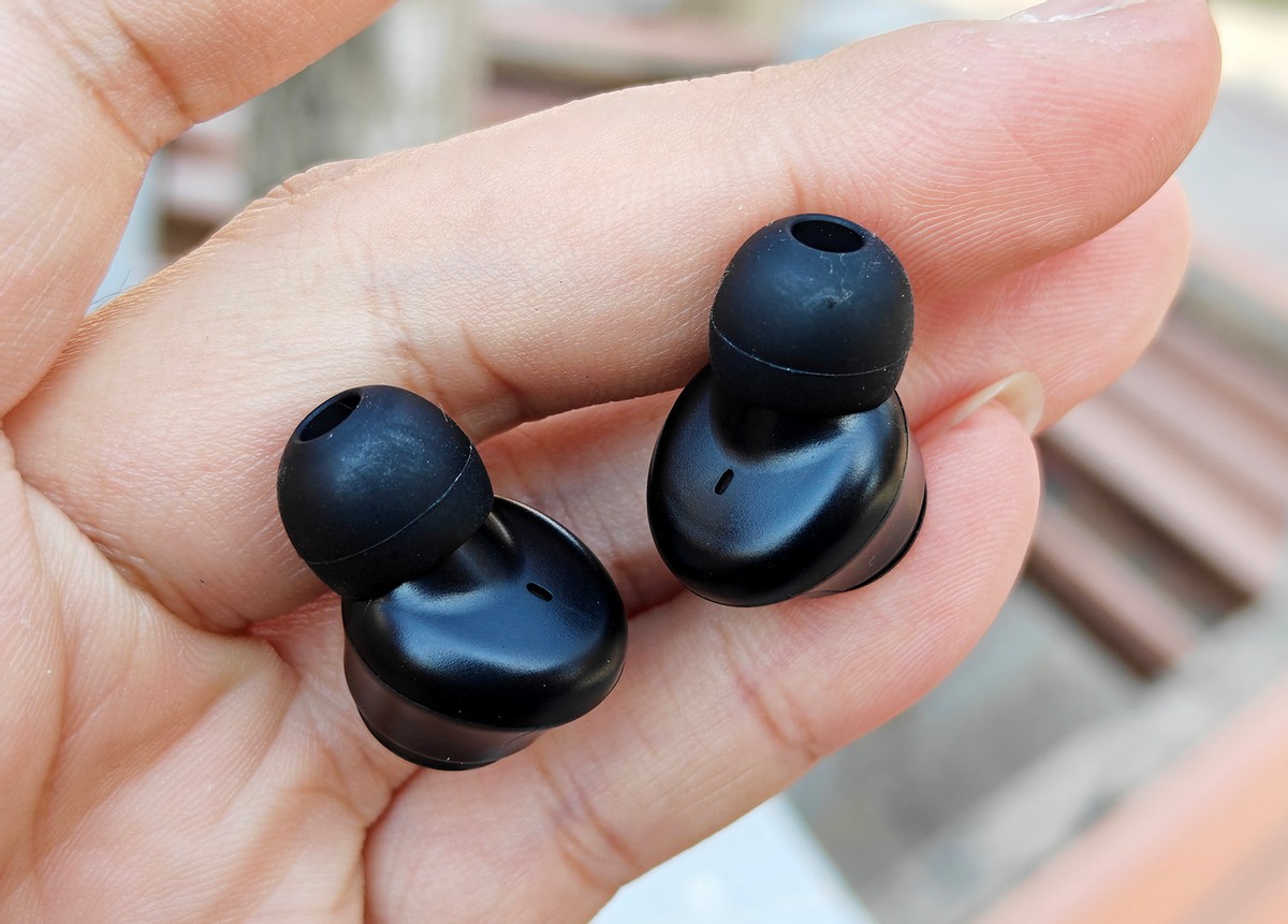 这款耳机的实际戴起来的感觉是很舒服的,而且非常牢固,它附带有大中小三种耳机帽,不管耳朵大小都能很好的佩戴。