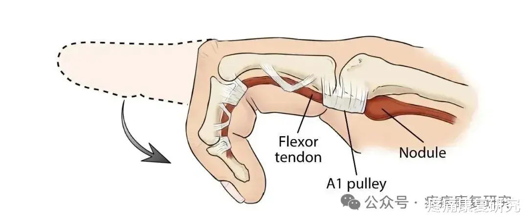 腱鞘增厚后,“管子” 变窄,肌腱滑动时卡得更紧;