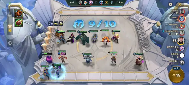后面,重新补齐质量,4连胜进入了野怪。此时场上只剩两家,这个时候找到了两星的泽拉斯。其余棋子也全员两星,争夺吃鸡。