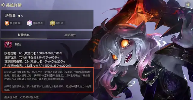 贝蕾亚身为换形师,但是放技能之后却并不是增加血量,而是突袭后排并且造成恐惧并且造成伤害,可以理解为简单的控制。