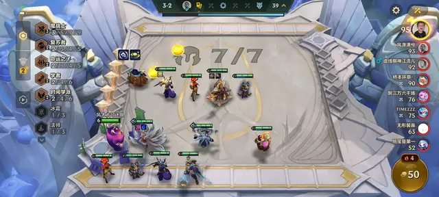3-5大选回来,已经拉了7级,同时场上装备做了一个法爆以及泰坦,给到了狐狸和人马打工,这里的选择是开魔战+命运+时间的羁绊,中期重点推荐人马,两星人马有上9的潜力。