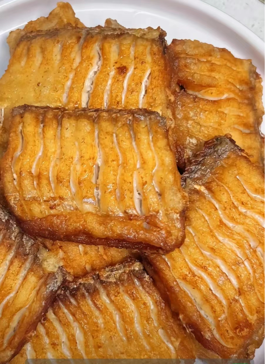 1 .带鱼去头、去尾、去鱼鳍,一定要擦干净内部的黑膜,千万别刮去表皮上白色的部分。