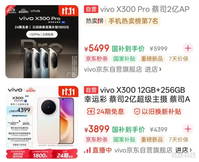 刚发布的 vivo X300 系列同样支持国补,vivo X300 标准版补贴后 3899 元起,vivo X300 Pro 补贴后5499 元起。