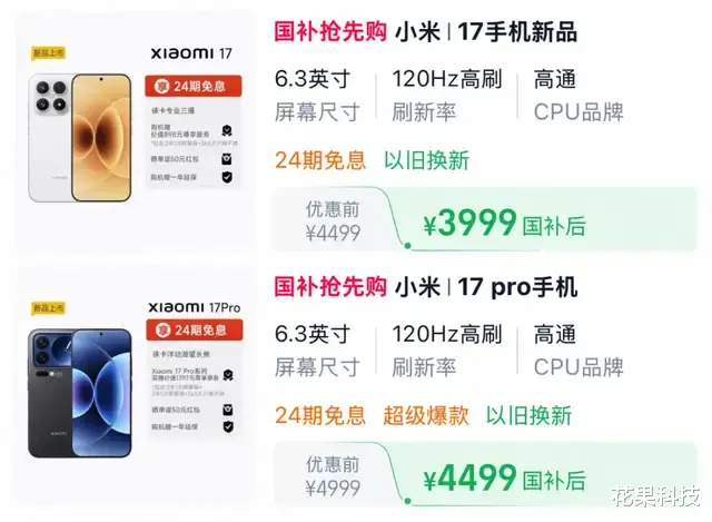 同样热度很高的小米 17 系列也支持国补,淘宝喵速达小米 17 标准版补贴后为3999元起,小米 17 Pro 补贴后为 4499 元起。