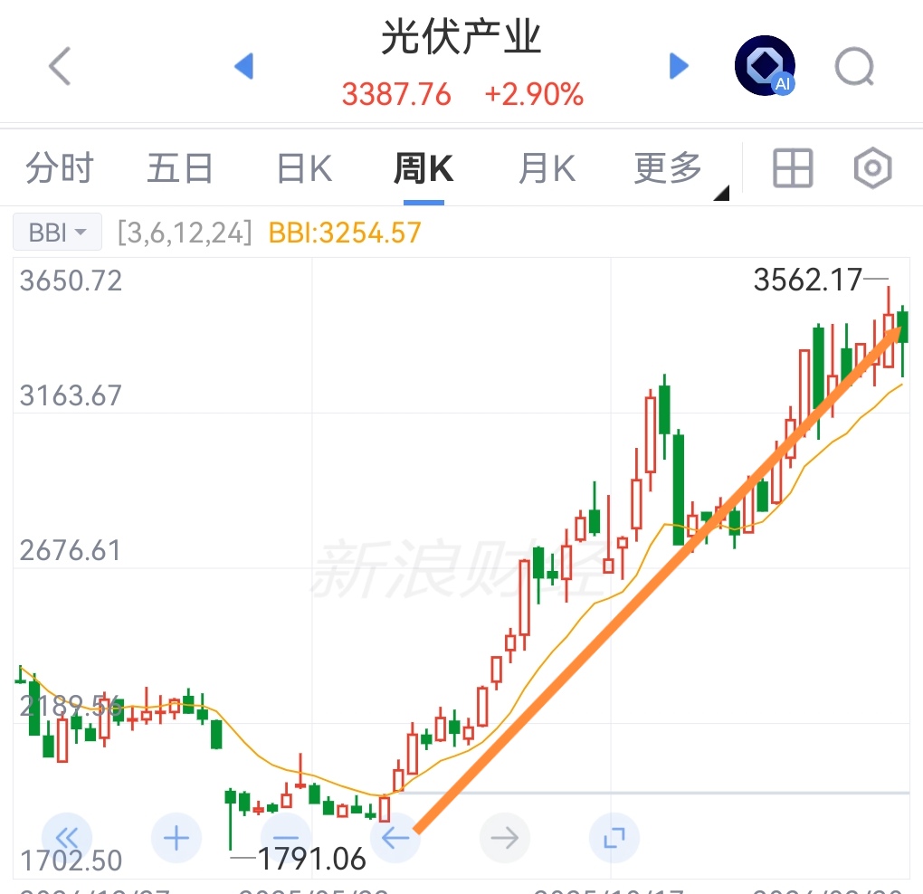 光伏板块内部出现了分化,行情还没有完全启动; 目前启动行情的只是光伏设备如光伏逆变器的大幅拉升,而光伏辅材硅料、硅片却走势差强人意,有点拉低、阻碍光伏板块指数; 下周如果光伏辅材硅料、硅片不要太拖后腿,那么光伏板块将也会是领涨的主线板块之一。