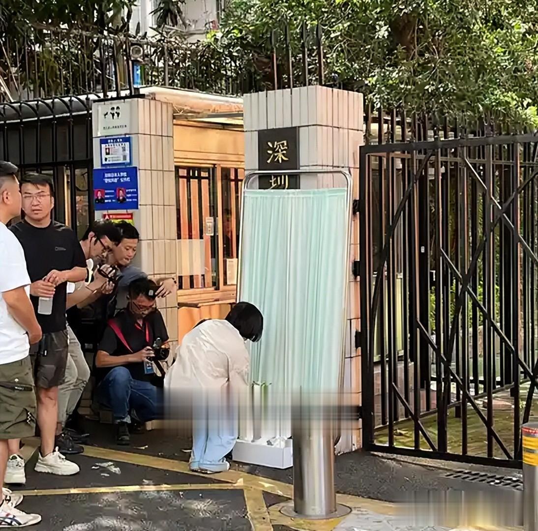 还有人去送花,然后旁边长枪短炮的人在拍摄,做行为艺术表演。
