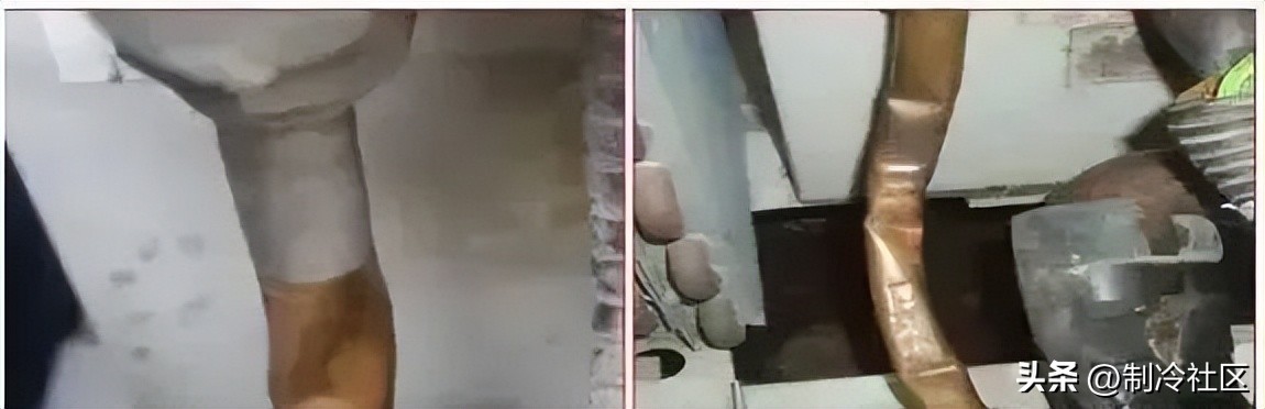 经压力平衡测试发现,故障内机所在支路与主回路间存在显著温差(ΔT≥5℃),重点排查倒数第三个分歧器连接点。割开该分歧器气管侧管路后,发现内部存在直径约1.2mm的金属碎屑(推测为焊接残留物),导致制冷剂流通截面积缩减至设计值的30%以下。此时系统高压侧压力骤降至1.2MPa(正常运行值1.8-2.2MPa),低压侧压力波动于0.15-0.2MPa区间,符合制冷剂循环受阻特征。