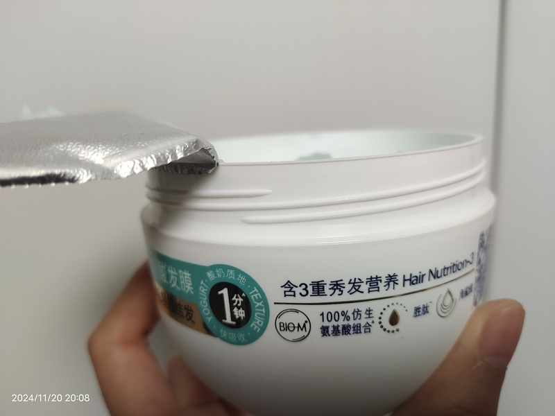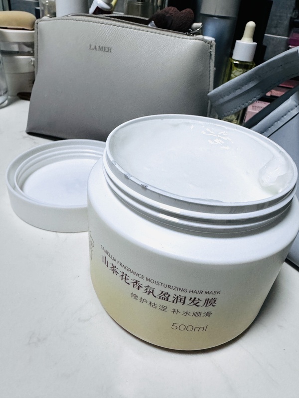 它的使用感受算是懒人友好型,洗完头随便擦擦就涂,几分钟就能冲掉,省时还不黏手。最明显是吹风时候的变化,以前热风吹十分钟满屋都是飞毛,现在至少能安安稳稳定型了。尤其染完头那几天用着安心些,发尾分叉没再继续恶化下去。但要说完全顺滑如缎?倒也没有,干发状态下摸多了还是能感觉到一小节一小节的粗糙点。估计是因为配方里舍了厚重油脂,改用微囊缓释技术一层层修,所以滋润得慢条斯理,急不得。