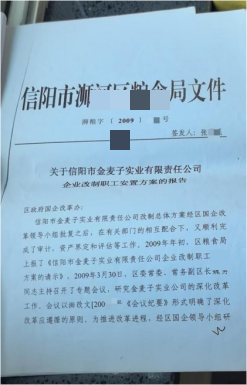 1993年因单位经营困难,他选择自谋职业,但人事关系一直保留在原单位。1997年,面粉厂改制为股份制企业“信阳市金麦子实业有限责任公司”。2009年,该企业进一步深化改制,浉河区粮食局、国企改革办等多部门联合印发《企业改制职工安置方案》。方案明确:凡在册职工均可参与身份置换,获得经济补偿或股权安置。而陈某新的名字,从头到尾,未出现在任何一份人员花名册之上。