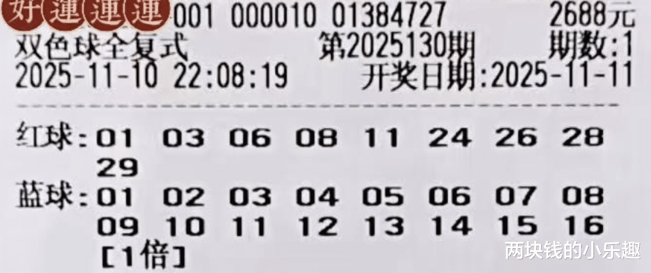 大家好,今天是11月11日,星期二,又迎来新一期双色球开奖的日子了,今天将要开奖的是第二25130期,上期开奖出现了一波小的井喷情况,所以开奖结束后奖池累计金额略有回落,但仍保持在28亿,因此并未影响大家出手,其中也包括这下复式,下面请大家开始欣赏: