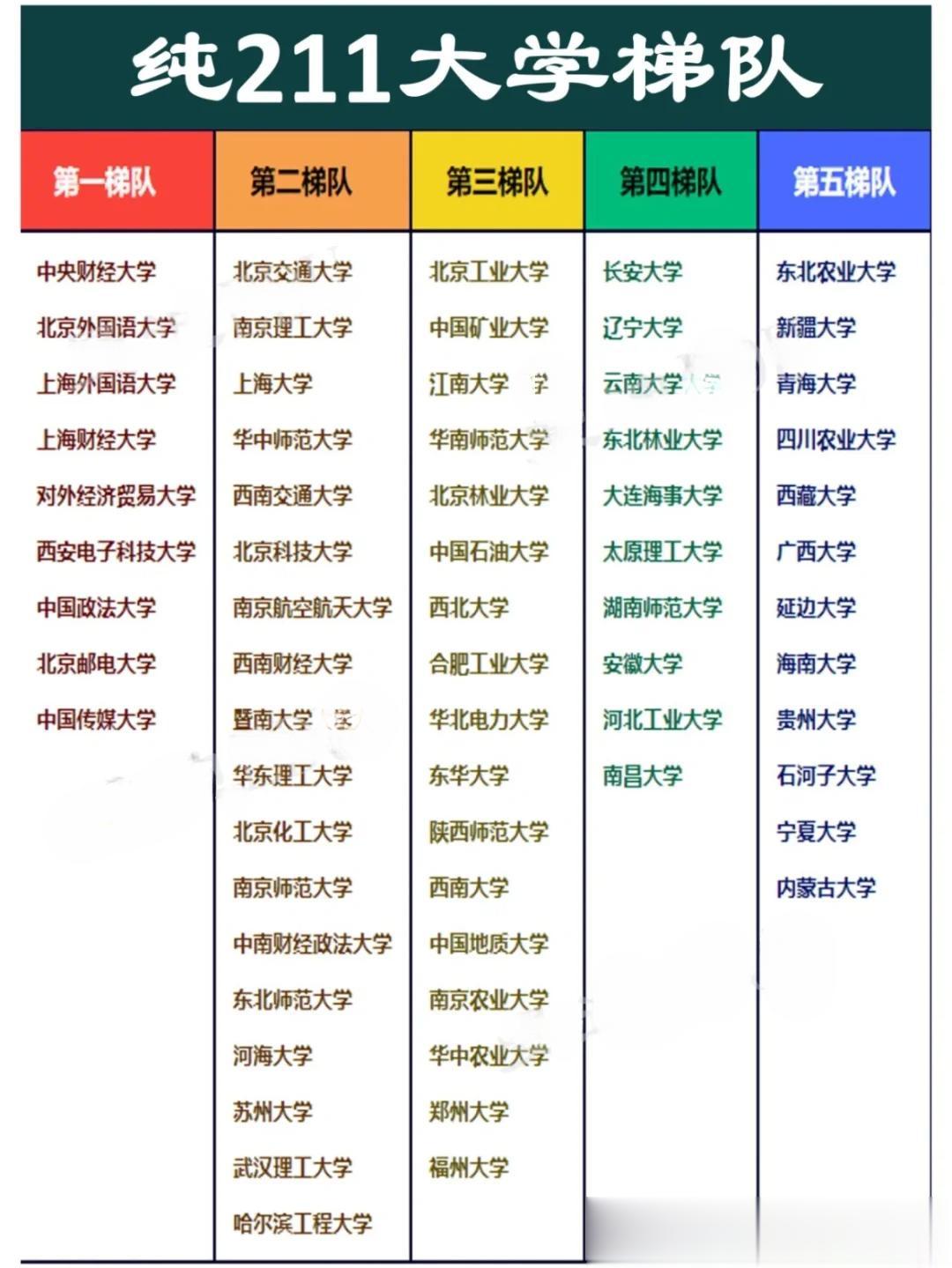 第五梯队:地理位置偏远,院校发展受限,又被称为“政策性211”。如西藏大学、宁夏大学等。