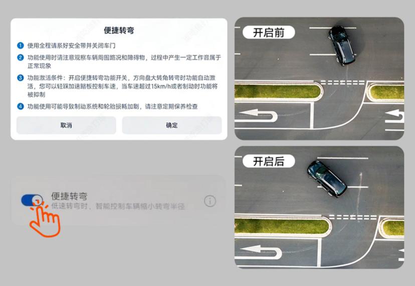 个人驾驶体验的优化,让驾驶变得更轻松、更舒适。四驱车型专属的便携转弯功能,能让转弯直径最大缩短0.36米,窄路调头、小区通行时不用反复倒车调整,一步到位告别“窄路焦虑”。HUD平视显示系统新增自适应调节高度功能,调整座椅后,HUD显示高度会自动匹配最佳视觉区域,减少视线移动带来的颈部和眼部疲劳,长时间驾驶更惬意。增程版车型的AI-ECO功能,基于实时路况和导航路径智能规划能量输出,动力和经济性双在线,日常代步更省钱。
