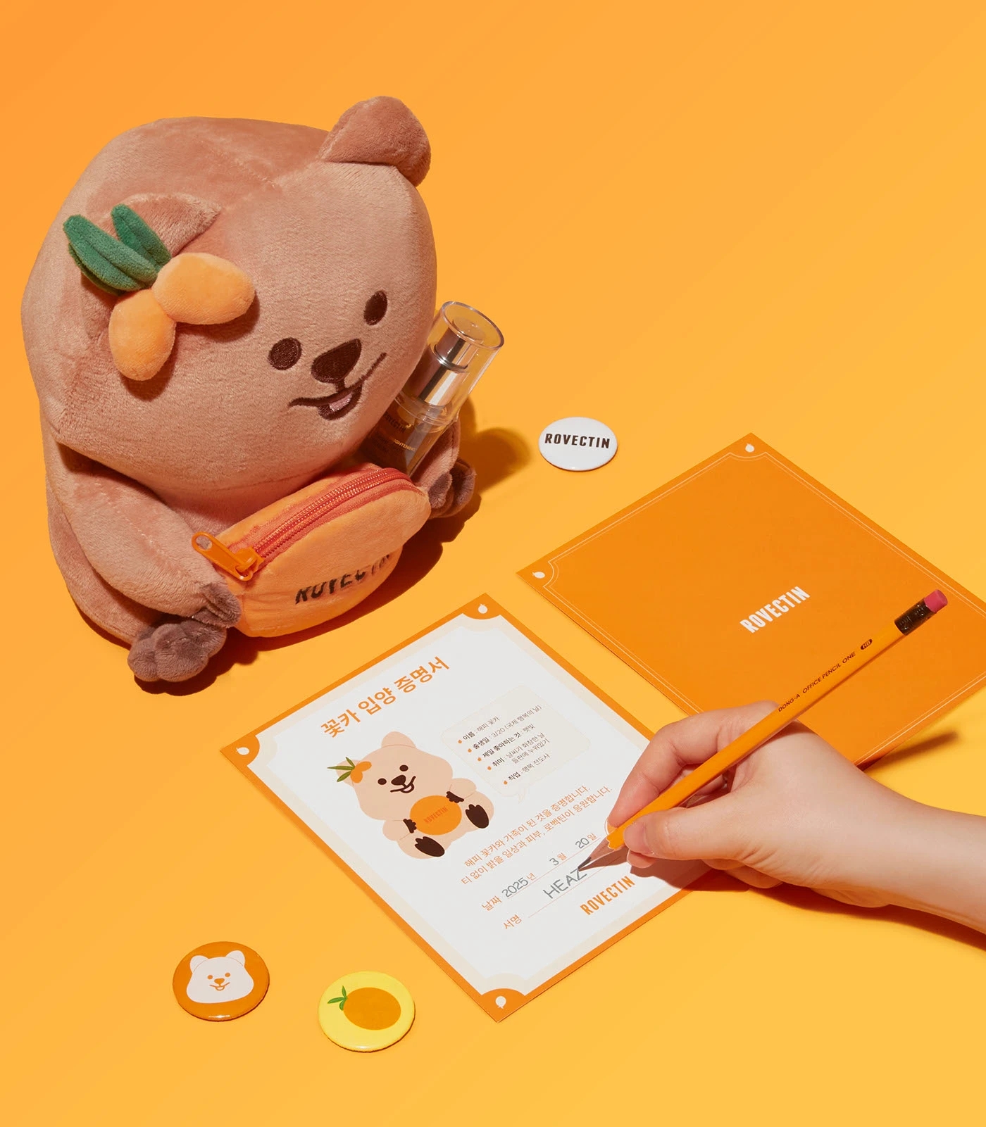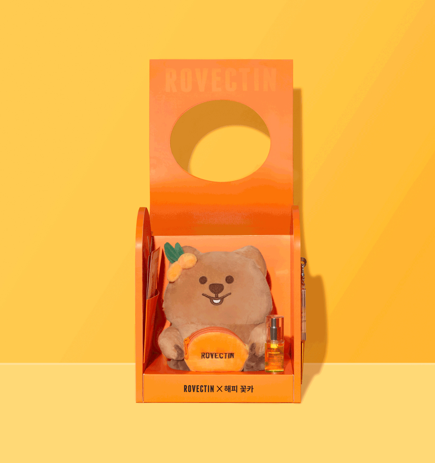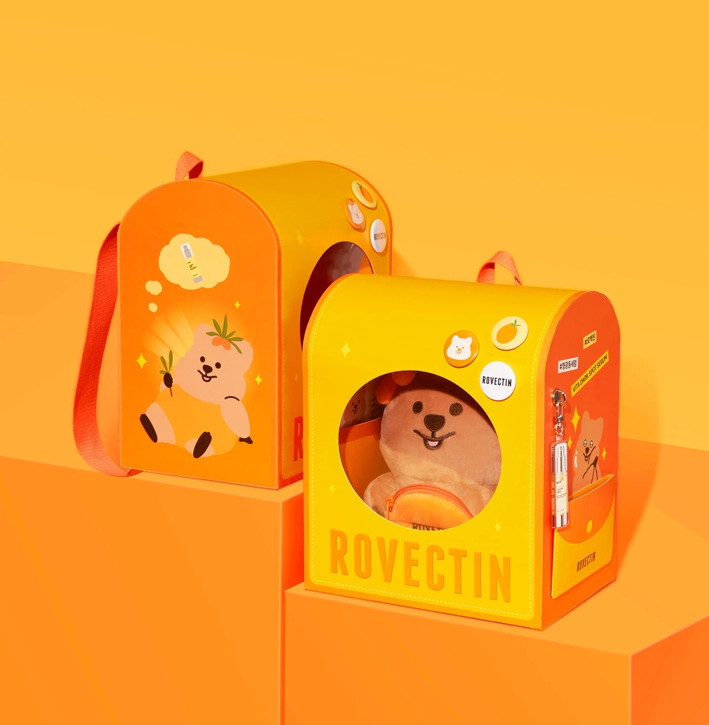 嘿,小伙伴们,你们见过比这更萌的化妆品包装吗?ROVECTIN和HAPPY KKOTKA联手打造的这款播种套件,简直就是萌宠与美妆的完美碰撞!包装设计灵感来源于宠物笼,但别担心,这里面的“宠物”可是能让你心情大好的伴侣娃娃“HAPPY KKOTKA”。磁扣、口袋、肩带,细节缝线,每一处都透着俏皮与精致。黄色和橙色的活泼色调,就像富含维生素的水果一样,让人一眼就爱上。还有那些PIN按钮、亚克力钥匙扣,简直是社交媒体上的萌宠新宠,让人忍不住想分享给全世界!