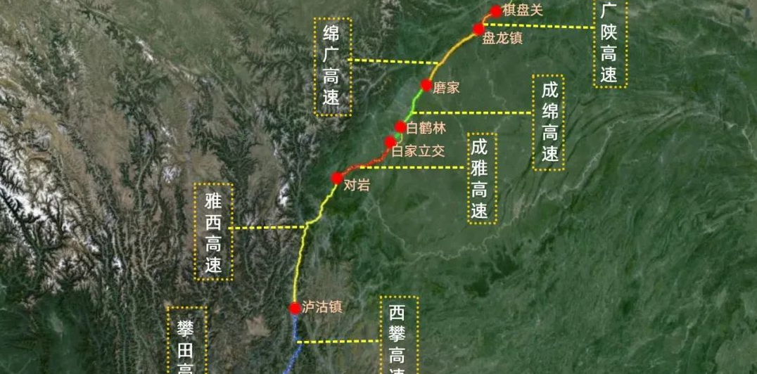 京昆高速在陕西的宁棋高速后进入四川境内,走广元,绵阳,德阳,成都,雅安,凉山州后,由攀枝花出境云南。