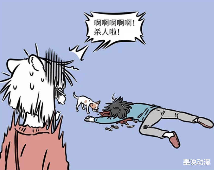 九月发现氧气老师“倒在血泊”中,旁边还有着一只猫咪在吃东西。如此惊悚的一幕,就算九月是妖怪,也会被吓一跳。九月认为,氧气老师被谋杀了。难道《非人哉》要走刀人路线?其实并不是,是九月误会了氧气老师。