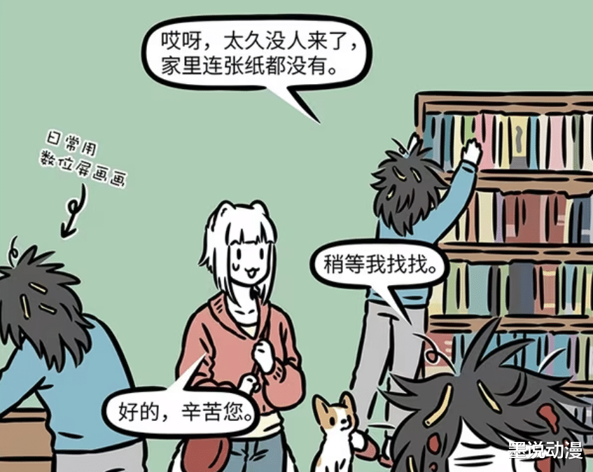 至于氧气老师,应该就是《非人哉》漫画作者一汪空气。网上有些照片,可以看出一汪空气老师还是很有气质。至于漫画中的氧气老师,或许就是以她平时生活作为原型来创作。因为家里长时间没来客人,所以找不到一张纸。此时九月很懵,她根本没想到偶像会是这个样子。