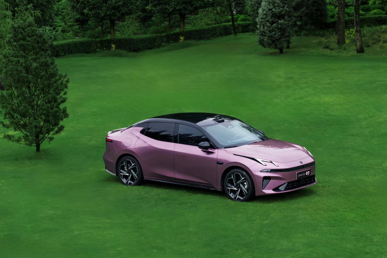 从设计细节来看,全新领克07 EM-P在“质感”上的打磨不止于内饰。外观承袭家族The Next Day设计语言,Y字形灯组采用扁平化处理,搭配一体式贯穿灯带中嵌入的红色晶体模块,点亮后形成独特的视觉符号,既避免了设计同质化,又能在商务或社交场合展现出得体的格调,满足“撑场面”的需求。车身侧面的立体腰线源自概念车设计,硬朗折线与平滑曲面过渡自然,搭配大尺寸运动轮毂,让整车姿态兼具动感与稳重,不管是日常通勤还是周末出游,都能贴合不同场景的气质。新增的极光银车色以细腻金属质感呈现光影变化,不同角度下折射出柔和光泽,既显高级又不易显脏;璃光紫车色则在不同光线下呈现层次丰富的紫色调,兼顾个性表达与日常实用性,为有为青年提供了多元的风格选择。