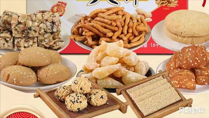 蜜三刀、羊角蜜、条酥、蜂糕、麻片、花生糖、金钱饼、江米条,