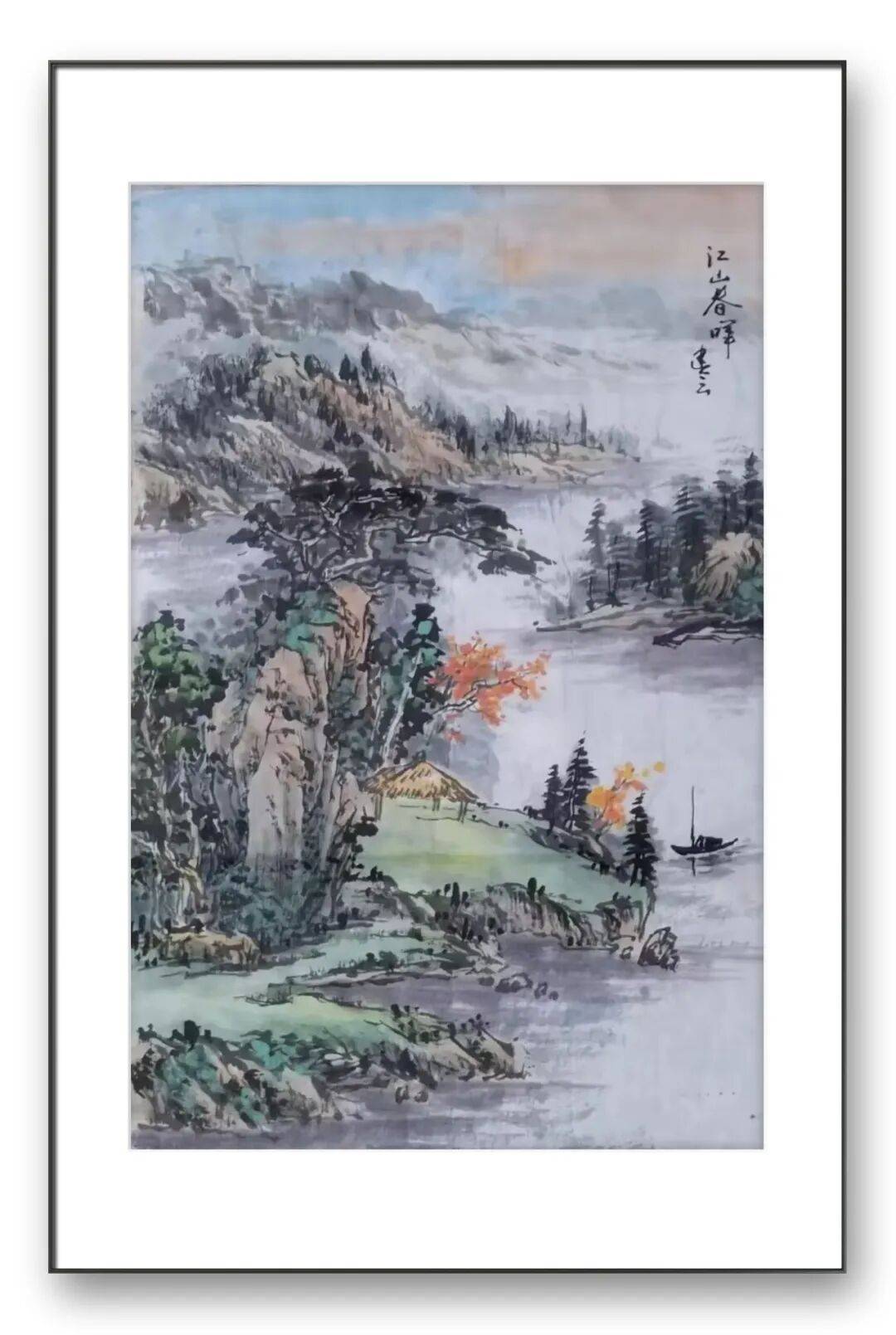先生善于通过虚实相生的手法,拓展画面的空间感与想象力。画面中,实处的山石、草木、小舟、古寺,刻画得细腻入微、形神兼备;虚处的云雾、远山、炊烟,则寥寥数笔、似有若无,给人留下了广阔的想象空间。这种虚实结合的处理,不仅让画面更加灵动鲜活,更体现了中国传统文化中“天人合一”的哲学思想,让自然山水与人文情怀完美融合,达到了“气韵生动、清新流丽”的艺术境界。品读先生的作品,仿佛能让人忘却尘世的喧嚣,沉浸在清幽悠远的意境之中,获得心灵的宁静与升华。
