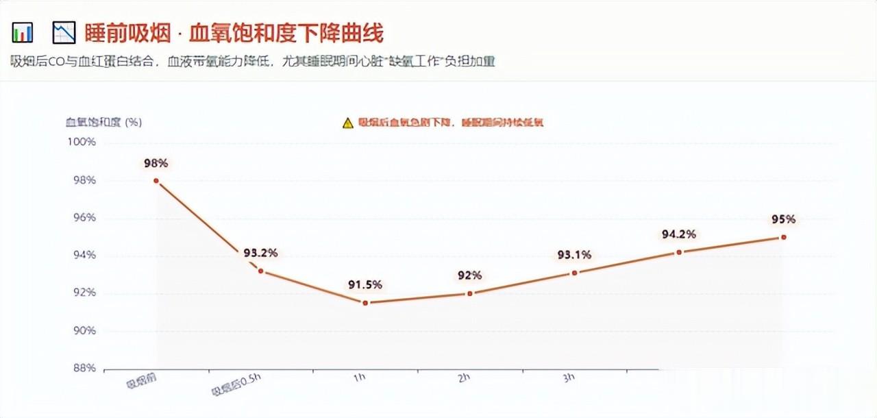 更关键的是“睡前这根烟”,相关研究分析,烟里的一氧化碳和血红蛋白的结合能力是氧气的200多倍,相当于把氧气“挤走”,血液带氧能力明显下降。你一边睡觉,心脏却在“缺氧工作”,负担更重。