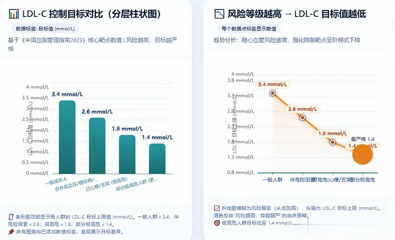 这个指标不是“差一点也没事”,而是每降一点,风险都在往下走。发表在《柳叶刀》的“胆固醇治疗试验者协作组”大型荟萃分析显示,LDL-C 每降低1mmol/L,主要血管事件风险大约下降五分之一。