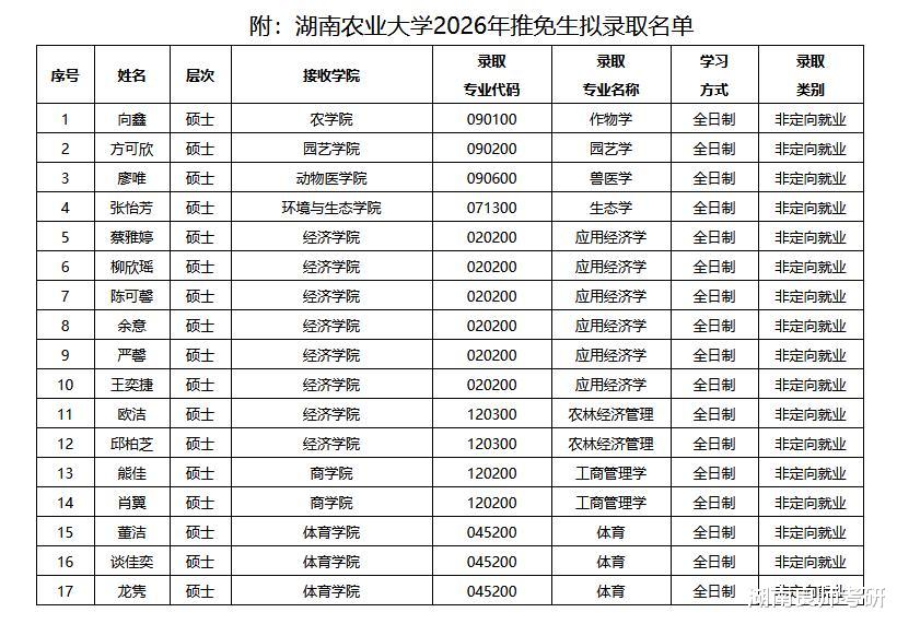 学科实力强:湖南农大的作物学、园艺学、生物学、农业资源与环境等学科在全国具有竞争力,留在本校能享受到优质的科研资源。