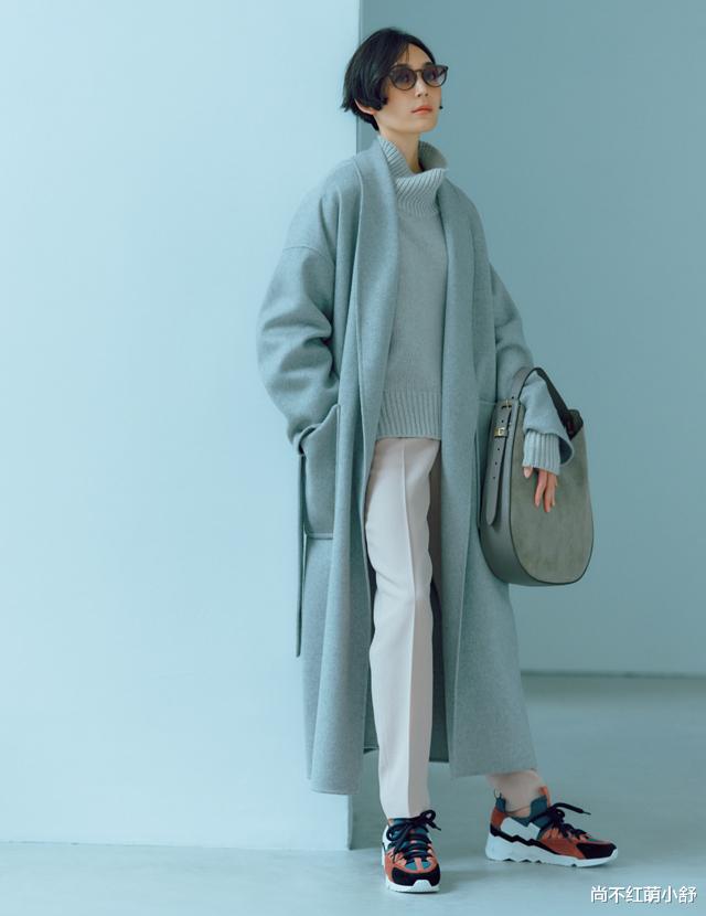 穿搭示范:一条九分烟管裤搭配白色针织也太优雅了吧,外披一件蓝色大衣,慵懒又松弛;至于配饰可以选择低调的珍珠元素,彩色运动鞋则丰富整体色彩,中年女性这样穿既减龄又高级。