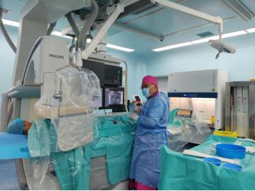 术前,团队依托精准影像资料完成导管路径规划。为确保手术安全,他们不仅制定了详尽的手术实施方案,还针对血管痉挛等突发情况拟定应急处置预案。手术当天,在数字减影血管造影(DSA)的精准引导下,宋海洋主导手术操作,烟台市奇山医院肿瘤介入科团队全程默契配合,逐步将微导管超选至肿瘤供血动脉分支。面对血管迂曲、微导管到位难度大的核心挑战,宋海洋凭借多年介入手术操作经验,反复微调导管位置,最终成功将球囊精准送达目标部位并稳定阻断血流。随后,团队结合患者肝功能储备极差的个体情况,精准调整化疗药物浓度与灌注速度,在确保治疗效果的同时,最大限度减少对正常肝组织的损伤。整个手术历时约1个半小时,全程进展顺利,患者术中生命体征始终保持平稳。