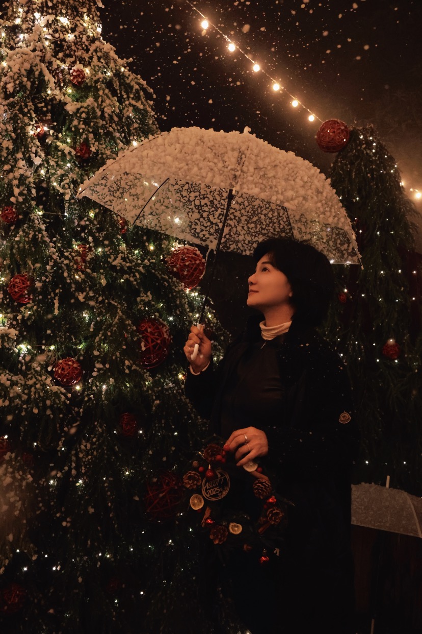 最令人难忘的是,现场的圣诞树下,飘起了人造雪。