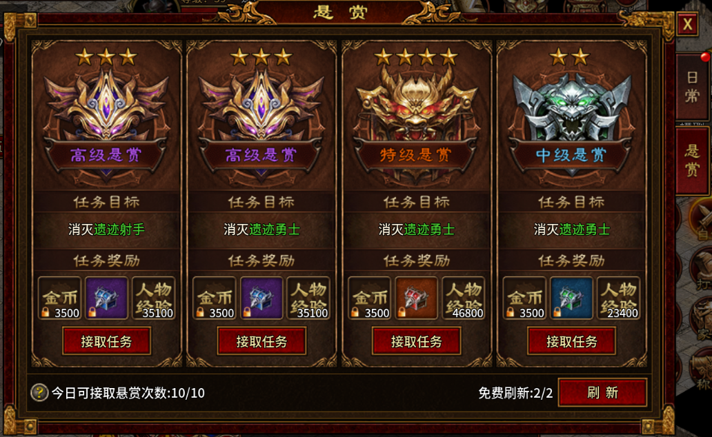 核心任务:每日清空主线、阵营日常、行会任务,经验丰厚,解锁阵营福利。