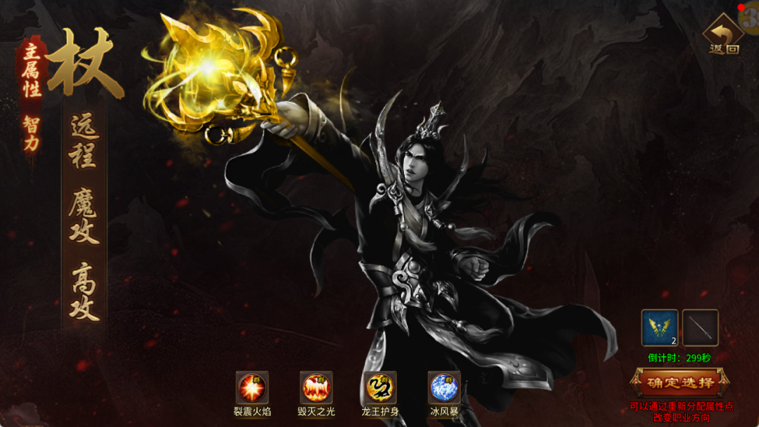 核心技能:火球术、冰风暴、流星火雨,清群怪、控场两不误。