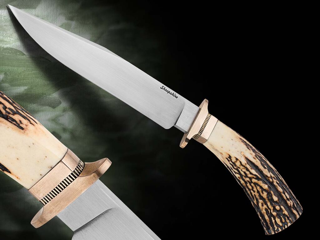 肖恩·施罗普希尔想要一把不仅看起来锋利,而且与使用者配合默契的博伊刀。于是他打造了这把鹿角手柄的精品。7.5英寸(约19厘米)的1084碳钢刀片和用户友好的青铜护手,使这把刀易于携带和操控。(乔斯林·弗雷泽 供图)