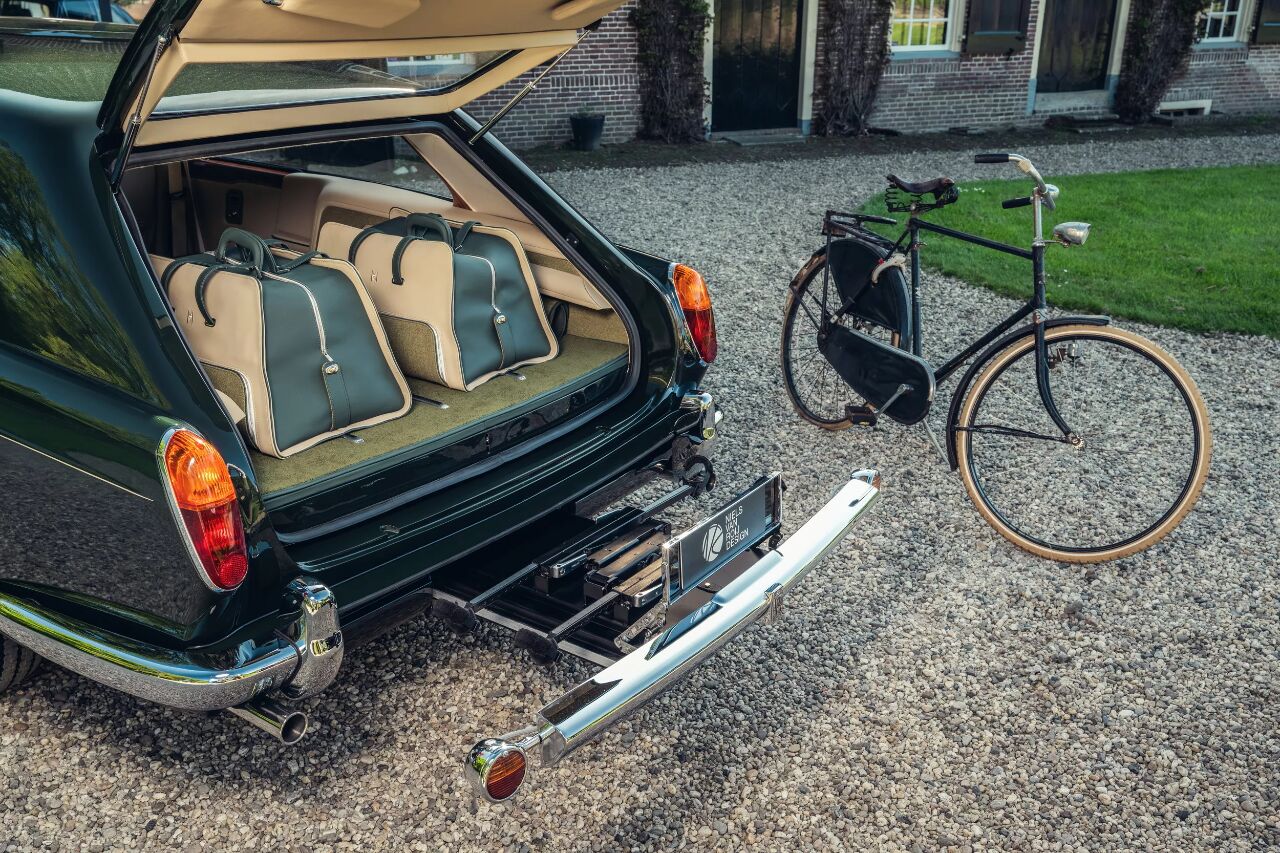 这辆车不仅延续了原有的奢华气质,还融入了现代功能性,最引人注目的莫过于它隐藏在车尾的定制电动自行车架,令人称奇的设计让它成为了世界上最优雅的“运动休闲车”。