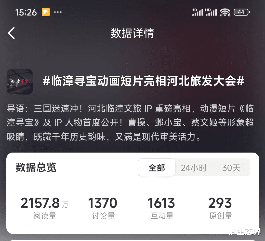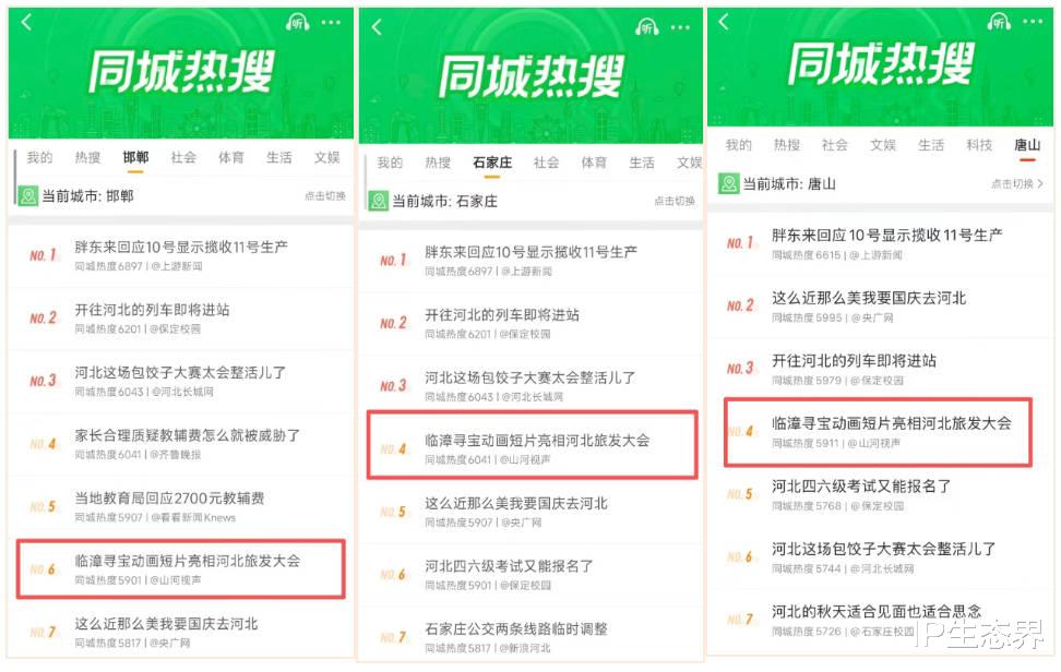 除此之外,《临漳寻宝》在抖音、微博、主流内容平台同样引发广泛讨论。相关微博话题#临漳寻宝动画短片亮相河北旅发大会# 上榜河北全省11个地级市微博同城热搜榜,话题阅读量2157.8万。相关抖音话题#临漳寻宝 获得超2000万曝光量。网友纷纷表示“被萌到了”“想去临漳打卡”。