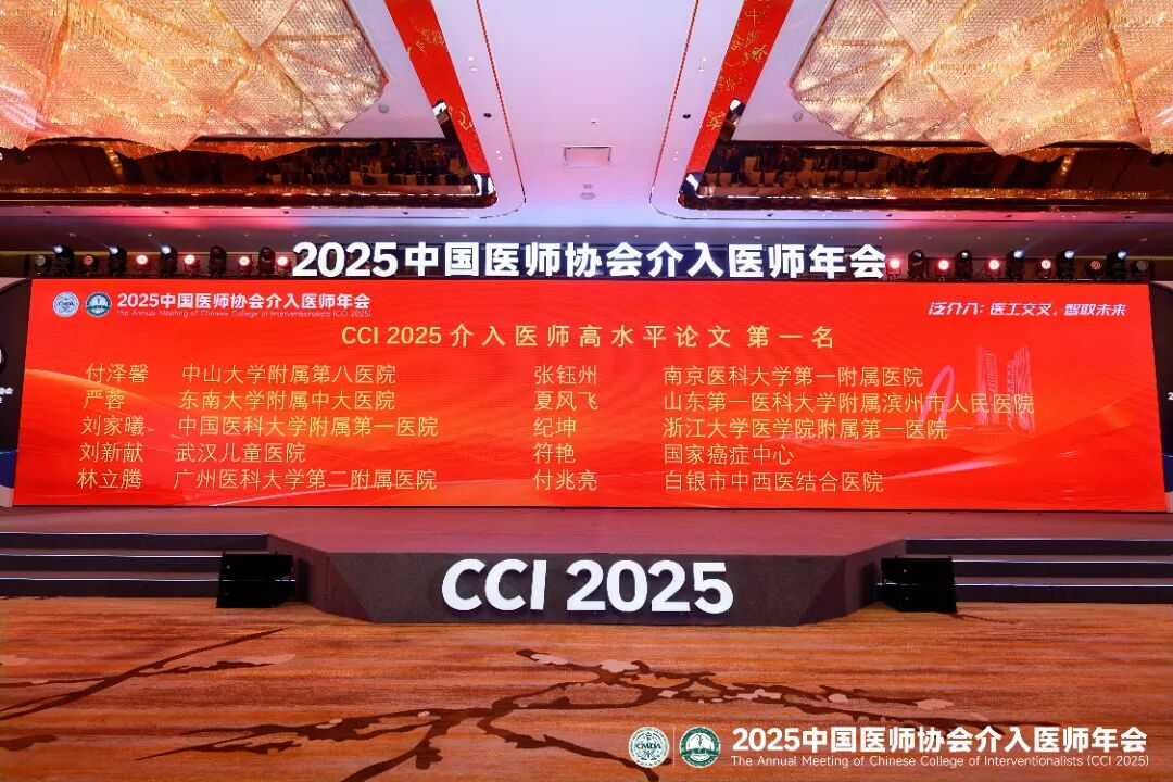 在近日于南京召开的2025中国医师协会介入医师年会(CCI)上,滨州市人民医院血管与肿瘤介入科的夏风飞副主任医师,从全国近万名介入医学精英中脱颖而出,其学术论文荣获大会“高水平论文会议发言第一名”。