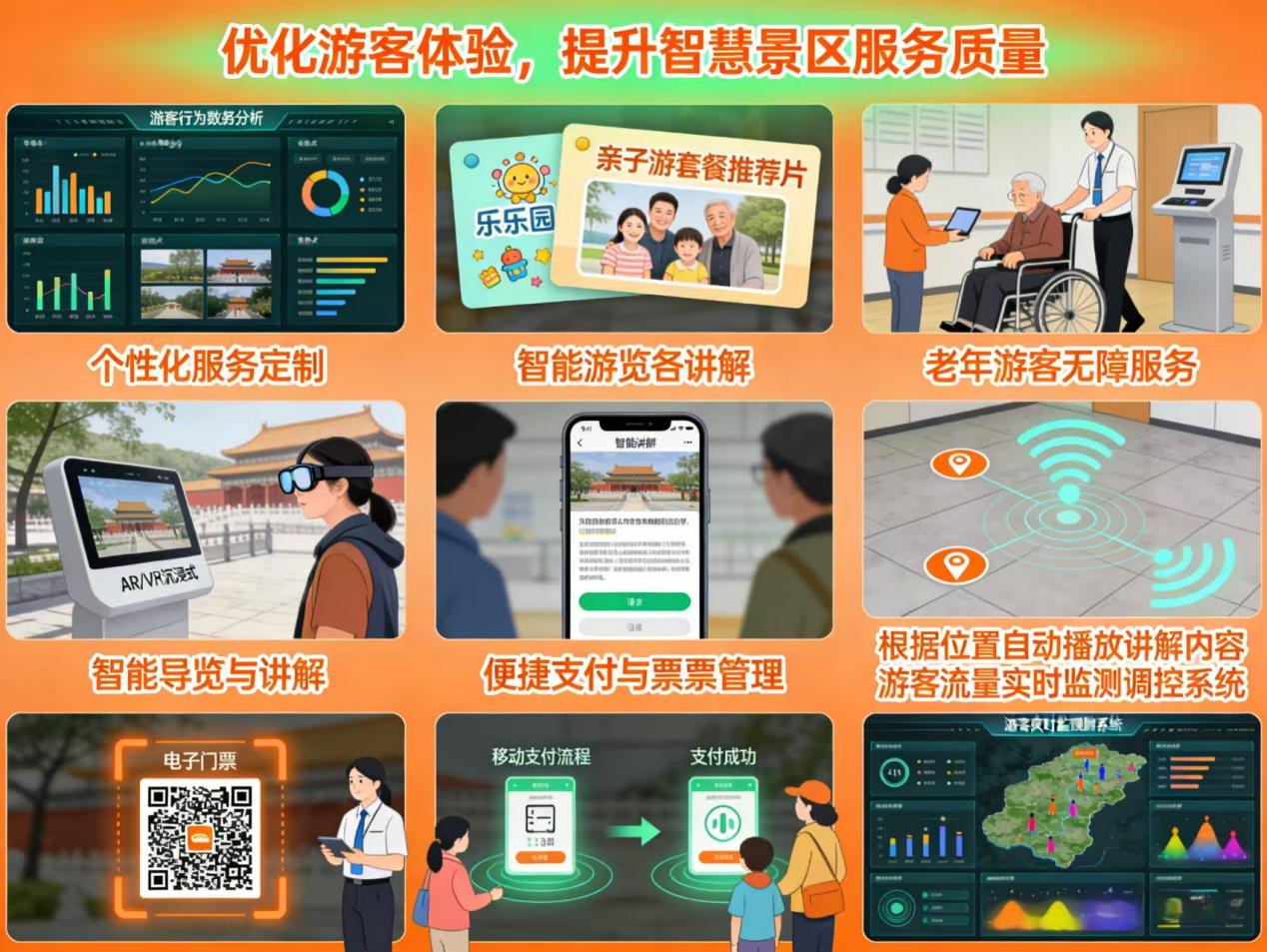 例如,通过5G网络实现景区内的高速数据传输,为游客提供更加流畅的在线服务体验;利用大数据分析游客行为,优化景区管理和服务;借助云计算和人工智能技术,实现景区资源的智能调度和应急响应。