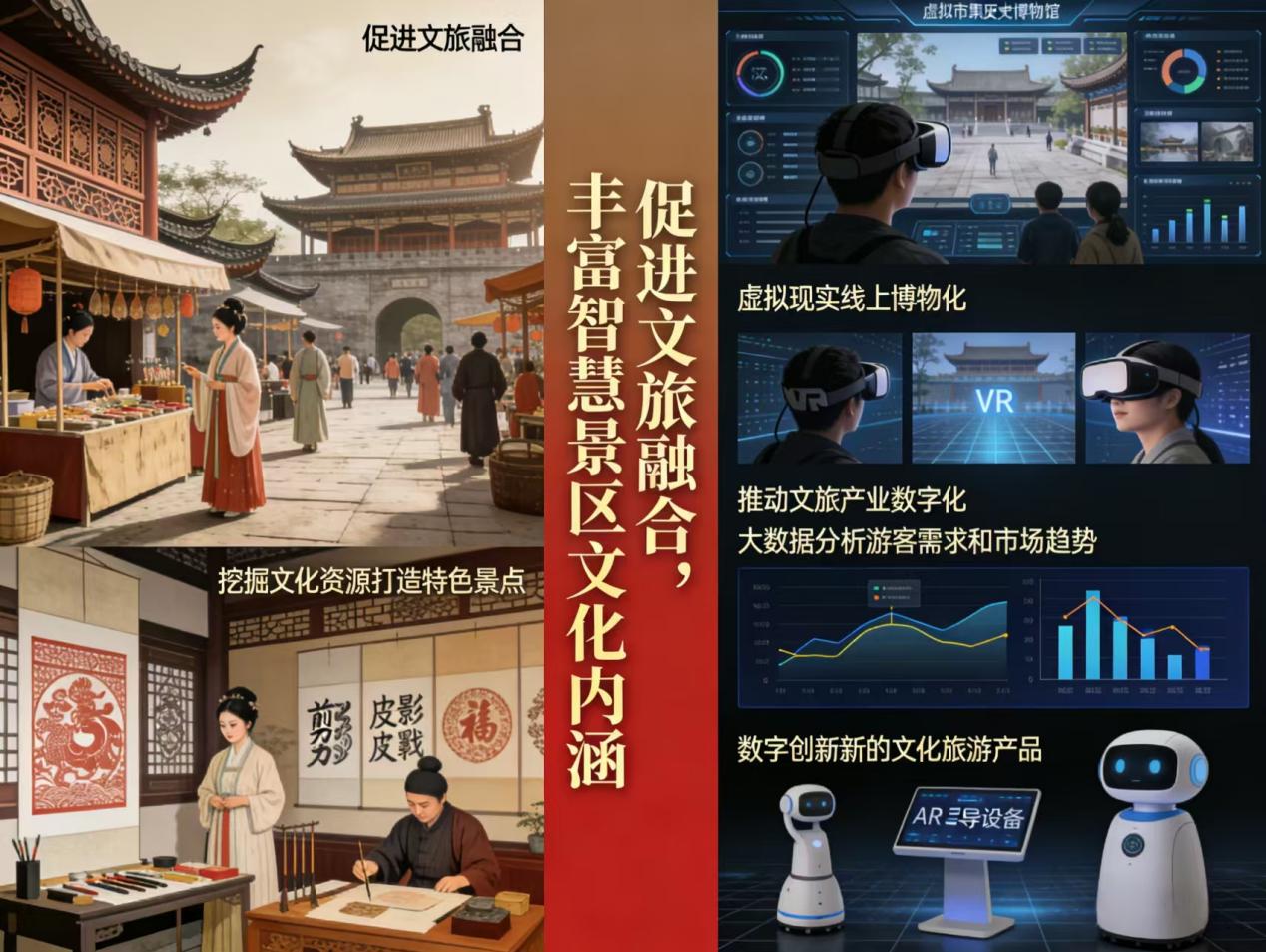 例如,通过虚拟现实技术打造线上博物馆、展览馆等文化体验空间;利用大数据分析游客需求和市场趋势,为文旅企业提供精准的市场定位和营销策略。