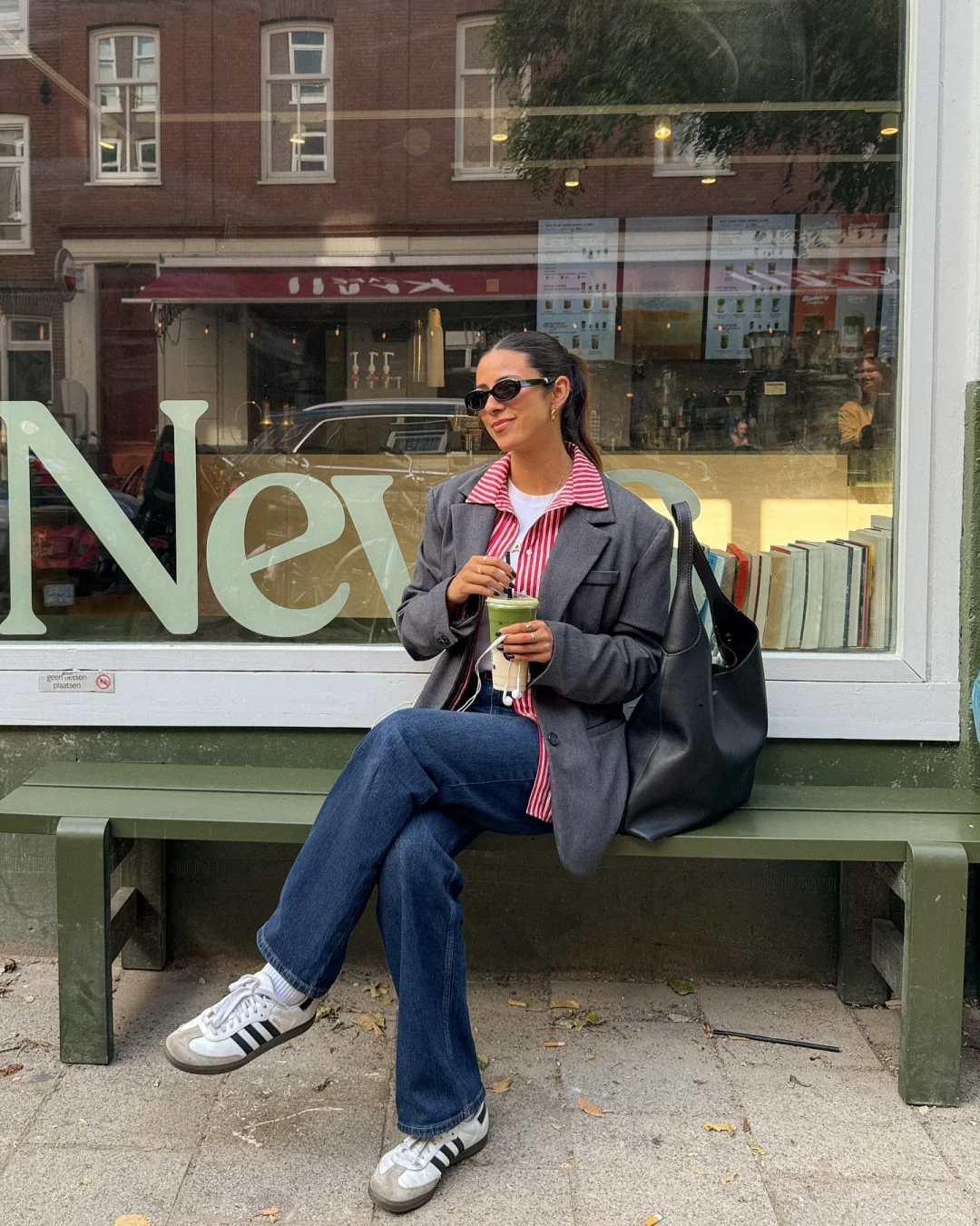 以大地色系为主,同色不同质,打造温柔又有层次的通勤风。