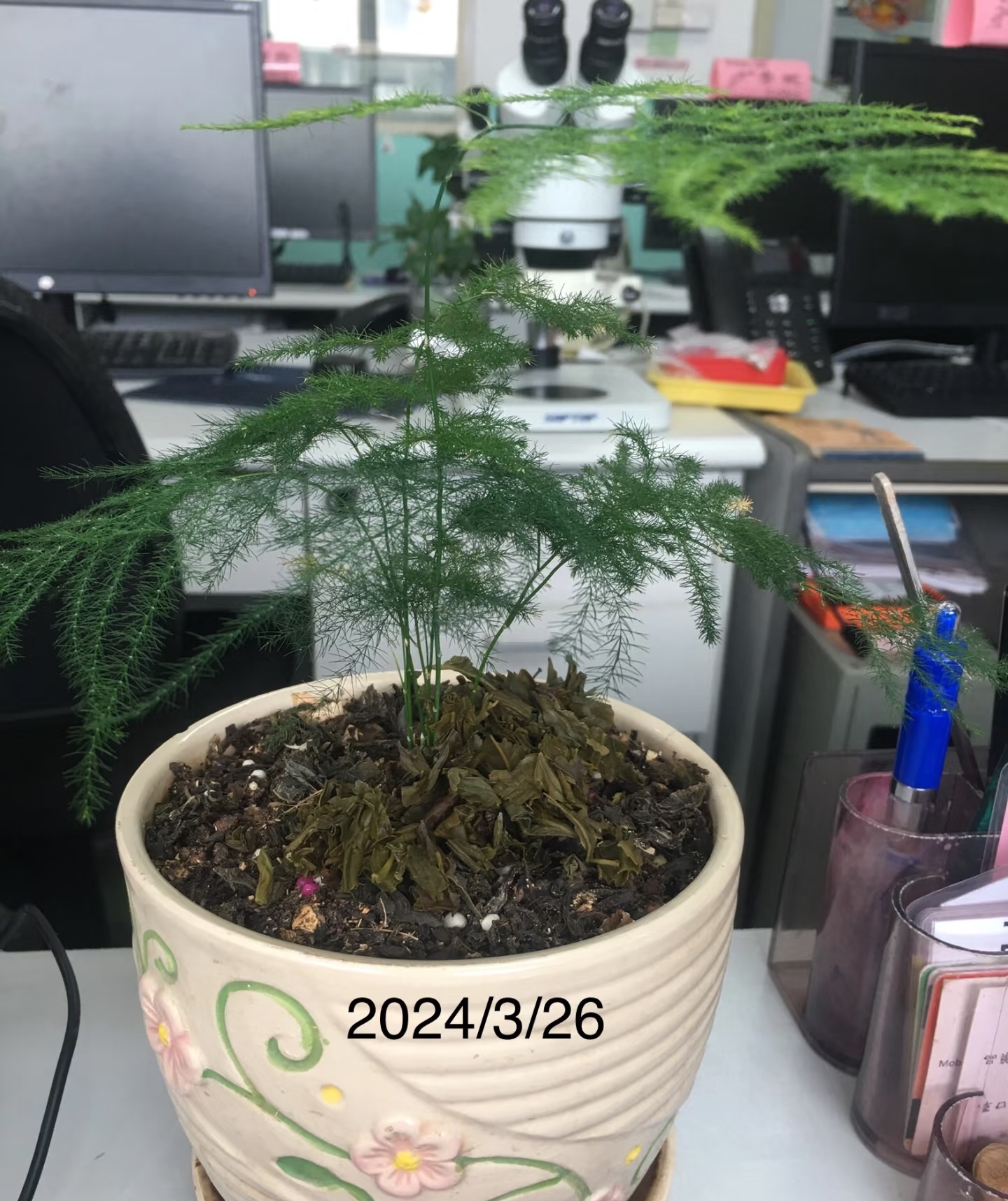 再加上茶里面含有氮磷钾元素,而且还有茶多酚、茶碱,经过发酵以后,会变成无机盐,以及氮磷钾。这些能促进文竹生长。