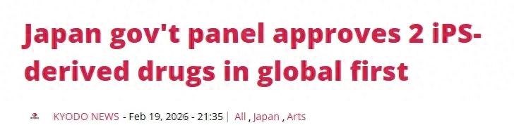 2026年2月19日,日本厚生劳动省的一个专家委员会审议通过,有条件、限时批准两种使用诱导多能干细胞(iPS细胞)的再生医疗产品的生产和销售。
