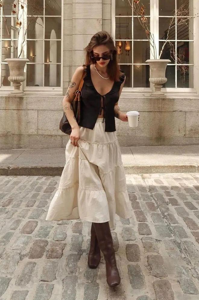 马甲和吊带是最常见的无袖上装,通常它们也是最能体现迷笛裙优势的单品,可以与迷笛裙量感形成强烈对比,这便是最显瘦的方法之一!