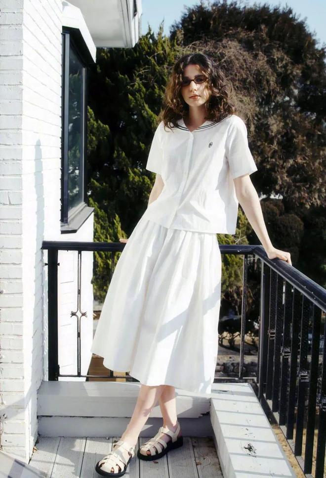 夏日即将抵达,T恤也要备起来啦!正肩白T+高明度浅灰色的迷笛裙,清新感扑面而来。