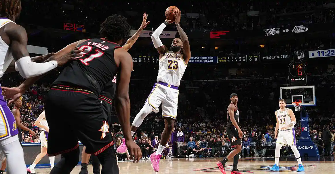北京时间2025年12月8日,湖人客场112-108险胜76人,终结对手三连胜。东契奇复出砍下31分15篮板11助攻三双,詹姆斯末节独得12分并在最后8秒抢断锁定胜局,艾顿7投全中高效贡献14+12。76人方面马克西空砍28+7+9,恩比德21投仅4中状态低迷,双方鏖战至最后一刻才分出胜负。 此役詹姆斯以40岁高龄刷新个人赛季得分新高(29分),其末节统治力引发球迷热议“老詹仍是联盟门面”。东契奇与艾顿的挡拆配合被赞“湖人新杀招”,而恩比德的低迷表现遭质疑“MVP状态滑坡”。这场强强对话既展现了湖人双核的冠军底蕴,也暴露出76人关键战攻坚能力不足的短板。