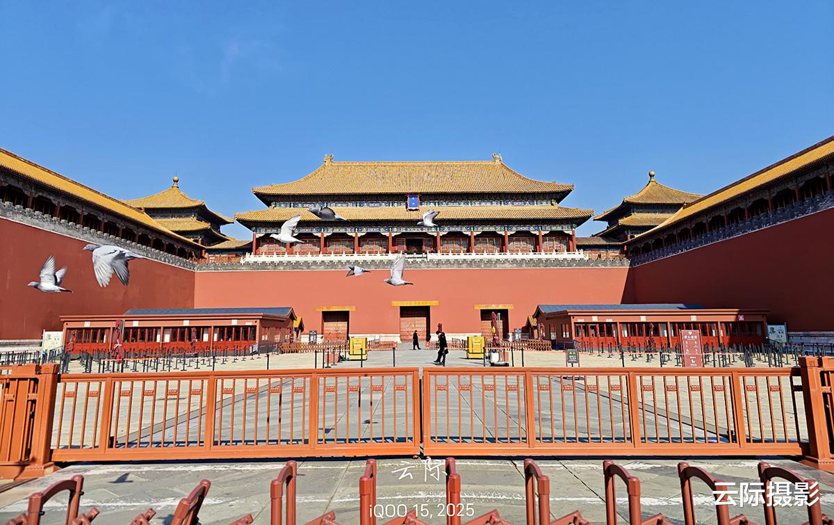 闭馆的故宫,人少而鸽子飞过瞬间。