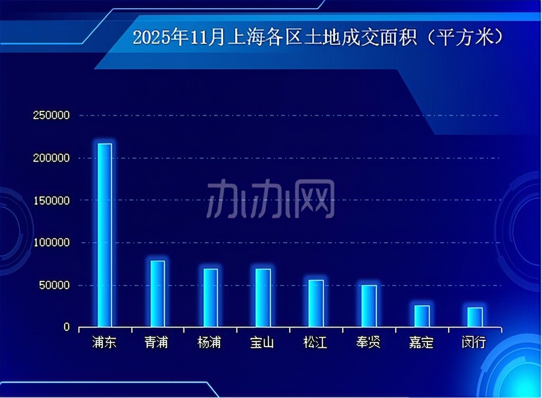 区域表现:浦东新区以7幅地块成交21.64万平方米成市场主力,杨浦4幅地块贡献64.77亿元,登顶成交金额榜首。