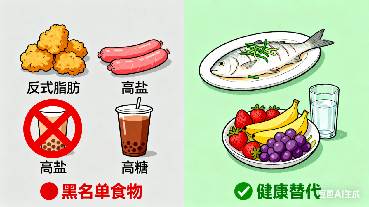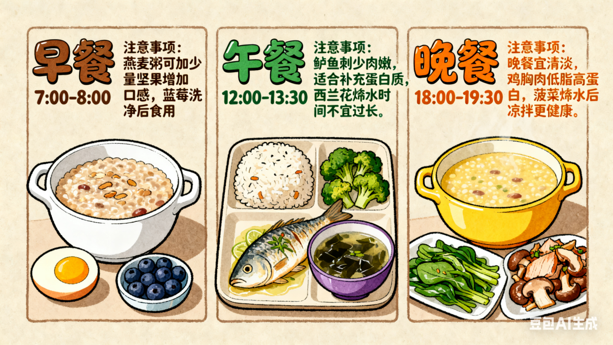 · 注意事项:晚餐吃七分饱,睡前3小时不进食