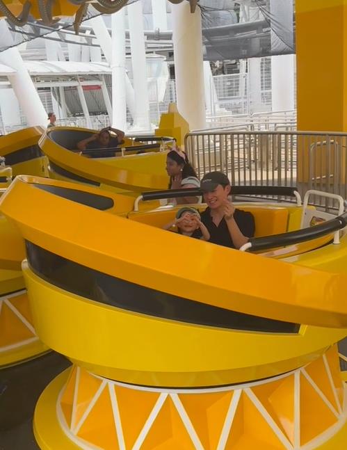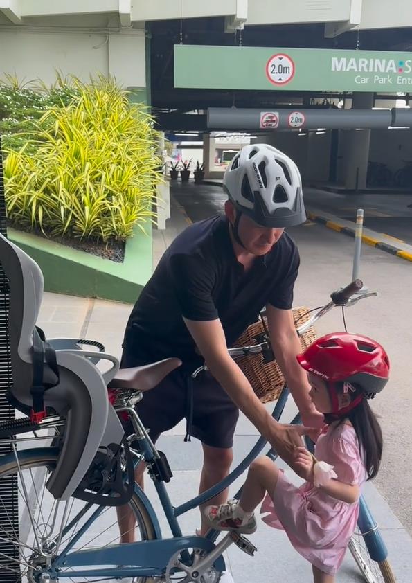 除此之外,王阳还带着女儿一起去了游乐场,体验骑自行车,父女俩一起对高斯比心,一家三口真的好幸福啊。