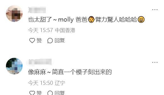 之前有网友分享出一张王阳与老婆高斯旅游时同框照,当时高斯就是灿笑入镜,如今对比Molly和妈妈的笑颜,当真是一模一样。