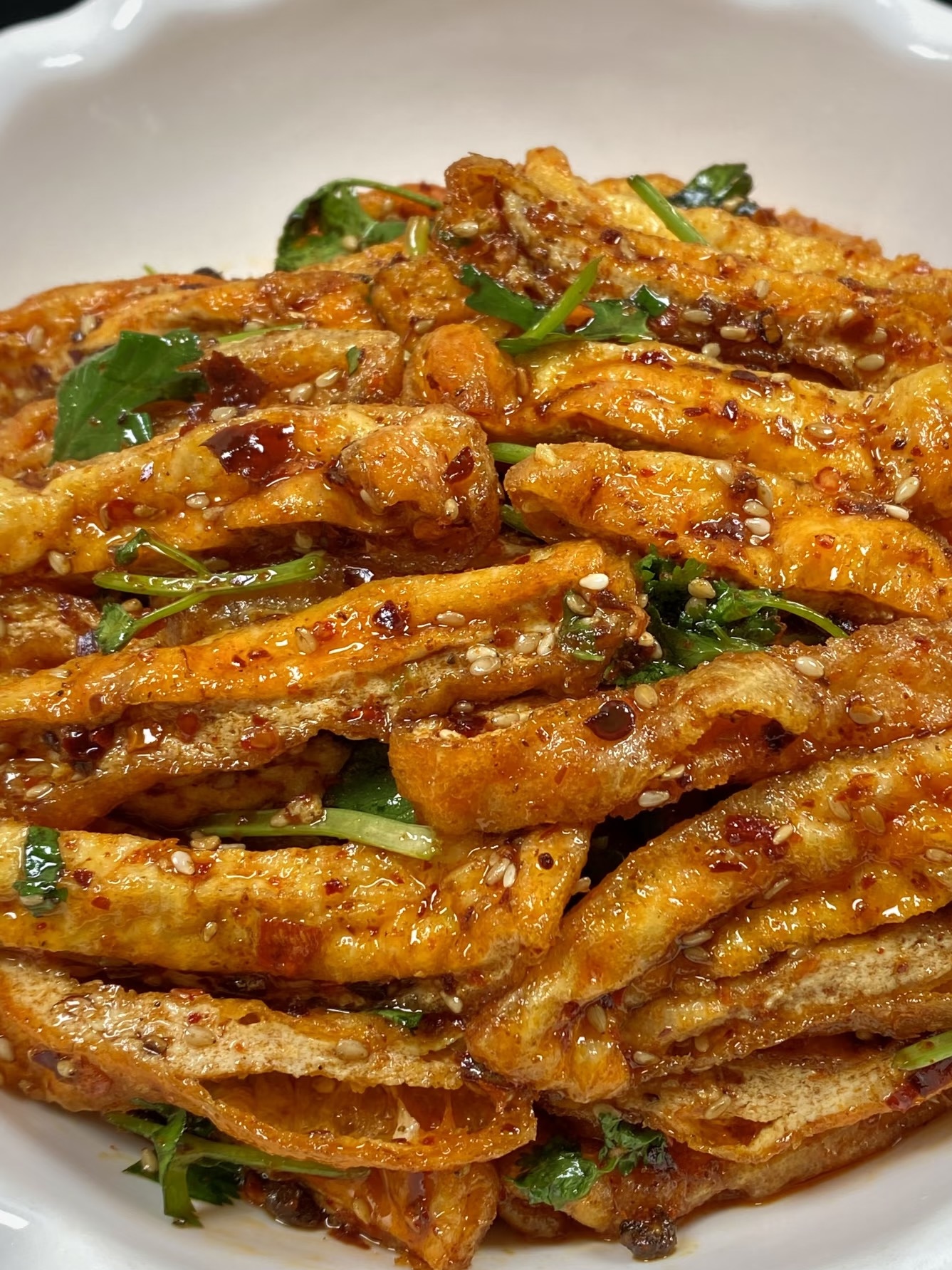 夏天厨房热成火焰山,还要炸东西?别怕,今天这道香菜拌豆腐,把“酥”和“凉”同时安排:外皮金黄咔嚓,芯子却冰清玉洁,再浇一