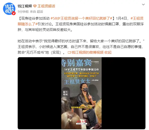 2026年1月4日,有网友在社交平台曝光58岁王祖贤现身美国硅谷参加中医艾灸分享会的现场照片,瞬间引发全网轰动。照片中的她全程口罩遮面,仅露出双眼,虽身形依旧高挑、气质沉稳,但明显浮肿的眼部状态和松弛的眼周皮肤,与年轻时灵动有神的模样形成鲜明反差,让无数网友感慨“岁月终究是留下了痕迹”。